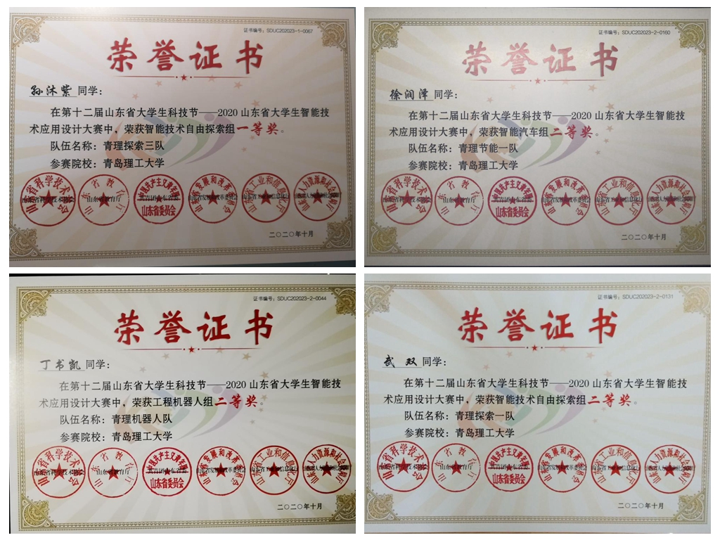 该项赛事是第十二届山东省大学生科技节的重要赛事之一,由省科协、省教育厅、团省委、省发展改革委、省工业和信息化厅、省人力资源社会保障厅联合主办,共吸引参赛学生近1200人,参赛队伍300多支。根据疫情防控的相关要求,本届大赛改为线上举行,分为预选赛及决赛答辩复测环节。本次竞赛主要分为6大赛题,在赛项内容上,不仅集成了机器人、智能车的多种传统类型赛项,还引入了模式识别、物联网应用等新兴智能应用热点,契合了当前以人工智能为导向的智能技术发展;形式上,既有展现控制水平的对抗式竞技类与竞速类,也有展现参赛选手创新设计水平的创意类创新;赛题更加关注现实问题的解决与应用。