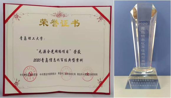 经过两年的建设,嘉陵江路校区无源全光网络夯实了学校信息化的网络基础,已经为2万4千名师生的工作、学习和生活提供了“高标准、高质量、高可靠和低成本”的网络支撑。经过网上投票、媒体评测、专家评审等过程,该项目最终荣获信息基础类“2020青岛信息化百佳典型案例”。(撰稿:李晓璐,审核:吉爱国)