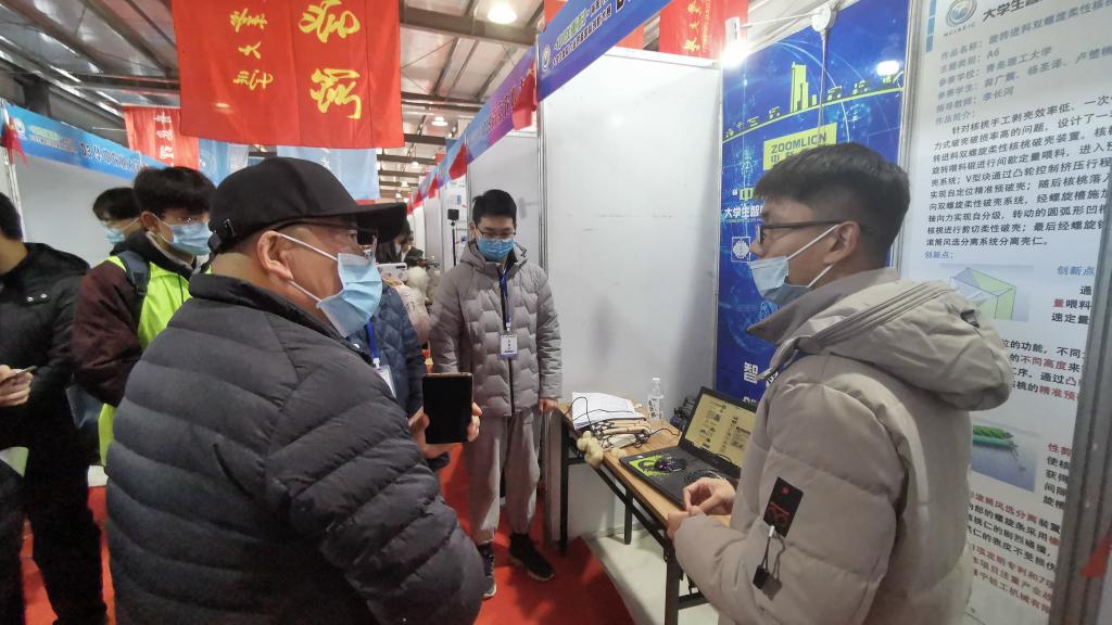 旋转进料双螺旋柔性核桃破壳装置项目(团队成员:苗广震、杨圣泽、卢楚楠、冯义田、王怀雨;指导老师:李长河)荣获二等奖;