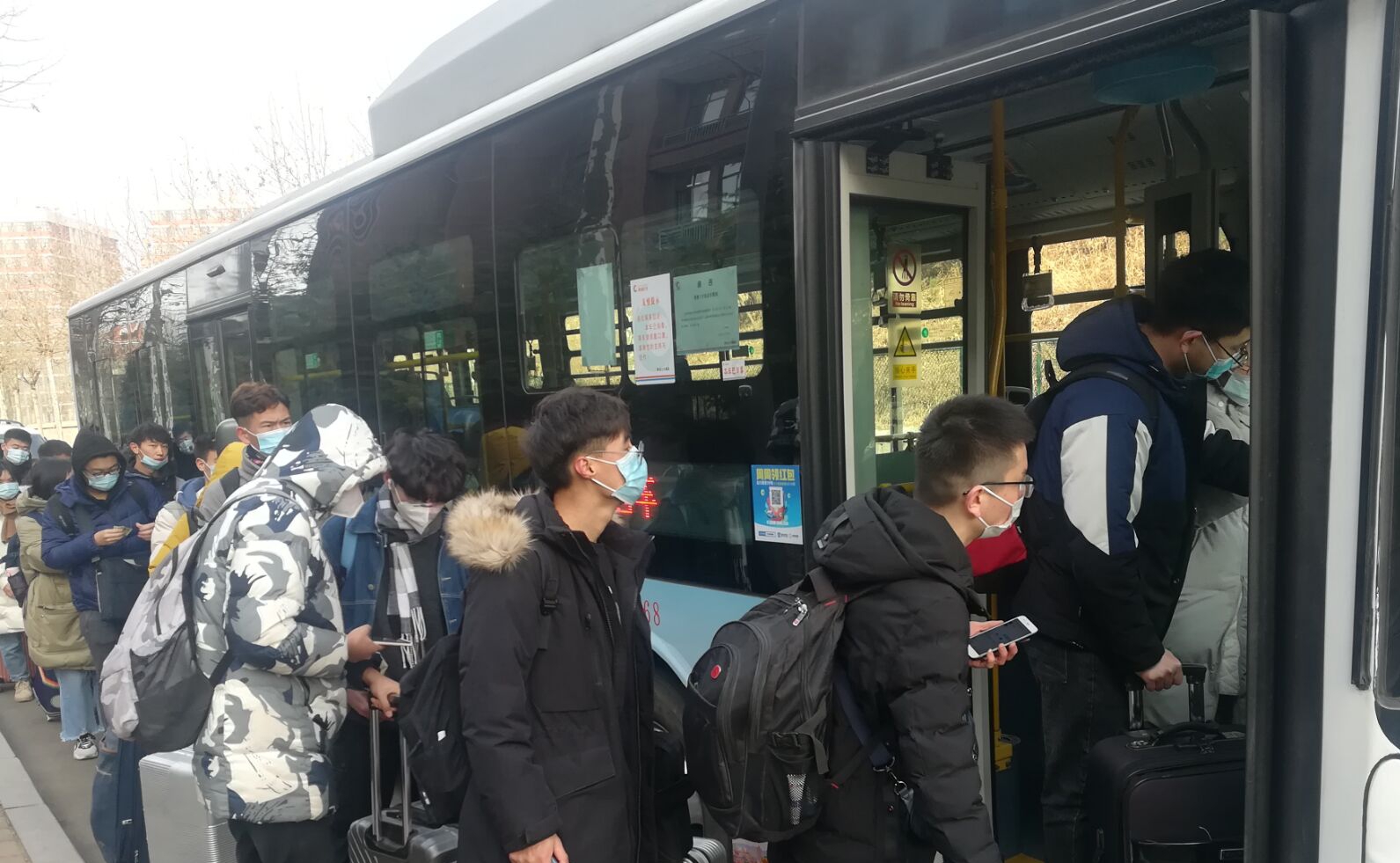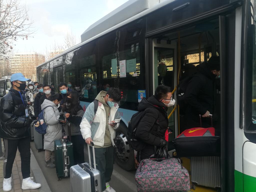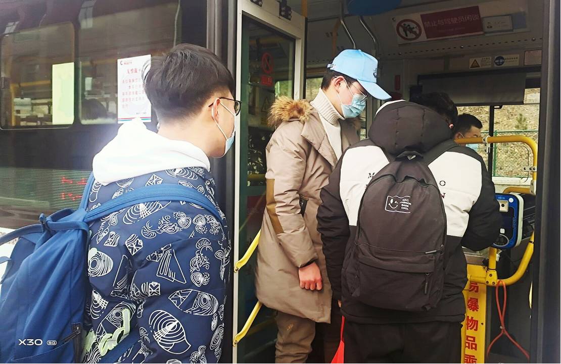 每一辆爱心直通车均进行严格消毒,做好服务细节,确保安全;爱心直通车上备有免洗洗手液、口罩、抽纸等,营造温馨舒适的乘车环境与和谐愉快的回家体验;学生们排队上车时,有志愿者进行指引并主动帮忙提行李......校内上车、准时出发、中途不停、同样价格,安全、快速、方便、惠民,大家纷纷为爱心直通车“点赞”。经贸192班胡真鑫坐上直通车兴奋的说:“以前放假坐隧道1需要转乘,费力又麻烦。直通车把上述问题都解决了,太方便了。非常感谢学校周到暖心的安排,也非常感谢在寒冷天气中为我们服务的老师和志愿者们,给大家点赞!”
