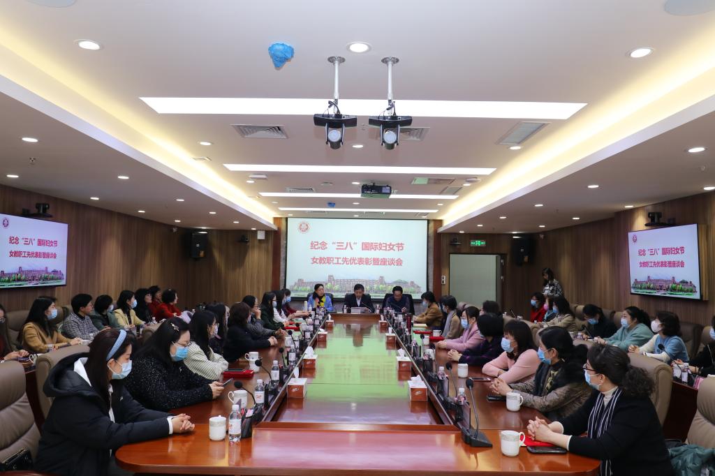 3月8日下午,学校召开纪念“三八”国际劳动妇女节111周年女教职工先优表彰暨座谈会。校党委副书记杨兴昌主持会议并讲话,校工会、妇委会负责人与40多名女教职工代表欢聚一堂,表彰先进、分享经验、庆祝节日。