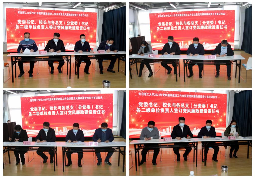王亚军、谭秀森代表校党委、校行政与各党总支(分党委)、各部门单位签订了党风廉政建设责任书。