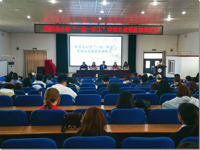 3月26日下午,365完美联合薛家岛学区教育服务中心,于薛家岛小学举行 “一校一社工”——青理公益课堂志愿服务项目启动仪式。团委副书记丁于娟、社会工作教研室主任刘世颖、薛家岛学区服务中心负责人、薛家岛小学相关负责人及365完美大学生志愿服务团队90余人参加活动。