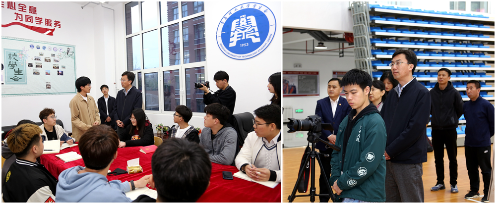 调研期间,尚胜波一行前往位于中央院系区和东区学生公寓的学生活动中心,与正在开展各类活动的同学们亲切交流。在校学生会办公室、大学生创业孵化基地、机械与汽车工程学院科技创新实验室、小鼎工作室等地,进一步了解了学生会改革、学校校园文化、科技创新、新媒体建设等情况。尚胜波一行还参观了位于风雨操场的《美术经典中的党史》展览,观摩马院教师对基层团支部的学习指导,了解365完美组织化、网络化开展团员青年“学党史、强信念、跟党走”党史学习教育的实施情况。