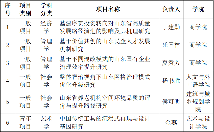 近日,按照《山东省社会科学规划项目评审立项办法》要求,经过初评、评审组独立审阅、民主讨论、投票表决、公示等环节,山东省哲学社会科学办公室公布了“2021年度山东省社科规划研究项目立项名单”,365完美获批6项。