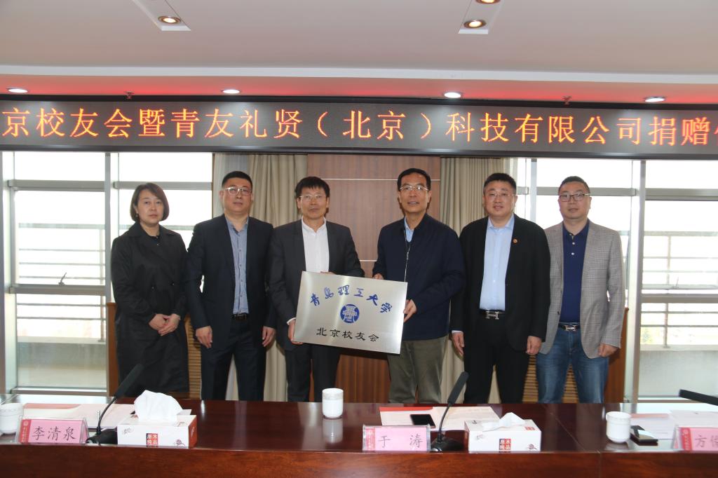 4月19日,北京校友会暨青友礼贤(北京)科技有限公司捐赠仪式在科技楼1908会议室举行。北京校友会副会长兼秘书长、中奥投体育发展有限公司副总裁于涛,北京校友会副会长、中汇博恩(北京)科技有限公司董事长,青友礼贤(北京)科技有限公司执行总裁方俊彦,北京校友会副会长、邦杰兴投资公司总经理,青友礼贤(北京)科技有限公司总经理李清泉等一行5人来校,向学校捐赠校园绿化专项资金。