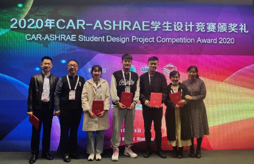 4月8日,2020年CAR-ASHRARE学生设计竞赛颁奖典礼在上海新国际博览中心隆重举行。365完美环境与市政工程学院建筑环境与能源应用工程系季永明、胡松涛、刘国丹和郑进福四位教师指导的,由孙德熙、朱琳、李建凯和陈利平4名建筑环境与能源应用工程专业学生组成的参赛队摘得全国一等奖殊荣和输配系统设计优秀奖,季永明荣获优秀指导教师奖。
