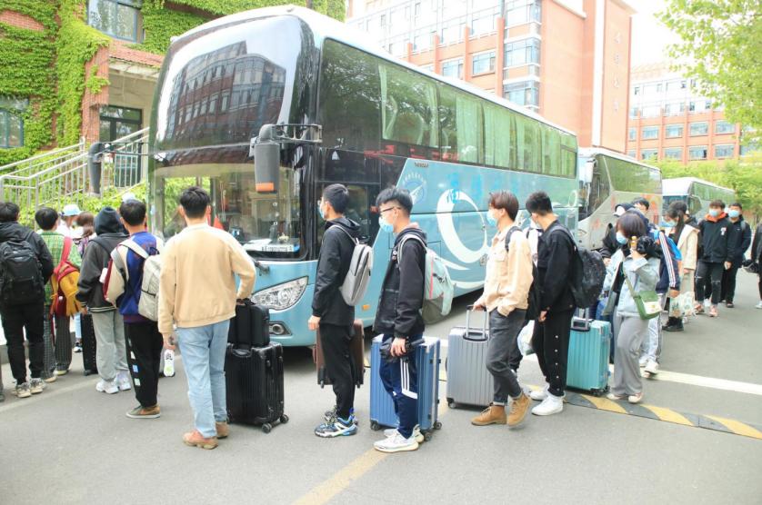 顺畅回家路,温暖学子心。此次“爱心直通车”旨在满足同学多角度、个性化的需求,根据返乡学生的路线开设由学校到各市的直达专车。活动前期,学生处、团委通过线上平台调查统计同学返乡人数及时间,确定发车数量,联合黄岛长途汽车总站定制校园直达学生家乡各市的长途大巴专线。4月30日中午12:30,第一批次7辆校园直通车已全部发出,第二批次的32辆直通车将于5月1日陆续发出,初步统计将运送学生1000余名学生。
