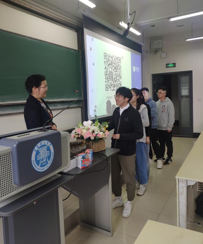 恰逢临近毕业,信息172班班长胡兴卓和同学为班主任张冬梅教授送上鲜花,张冬梅老师的《电路原理》是同学们的第一门专业基础课,也是首批国家级线上线下混合式一流课程,2021年获评山东省课程思政示范课。无论是课堂上还是日常,张老师像妈妈一样关爱着同学们的成长。