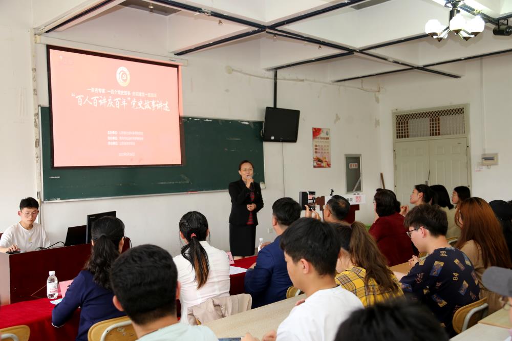 于宝真简要介绍了“百人百讲庆百年”党史故事讲述活动的开展情况,希望通过本次宣讲活动,进一步增强青年大学生爱党爱国的深厚情感,牢记初心使命、传承红色基因,不断激励青年大学生坚定不移听党话、跟党走、知党情、感党恩。