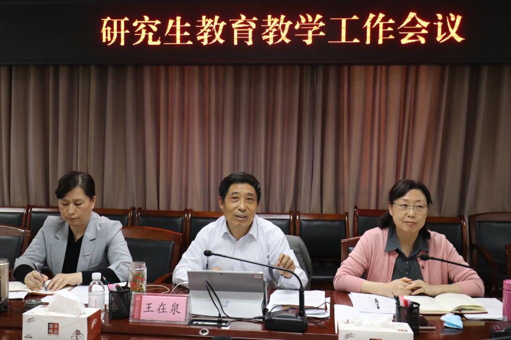 5月28日下午,研究生教育教学工作会议在嘉陵江路校区212会议室召开。会议由学校党委常委、副校长王在泉主持,各研究生培养学院分管研究生工作副院长、研究生处全体人员参会。