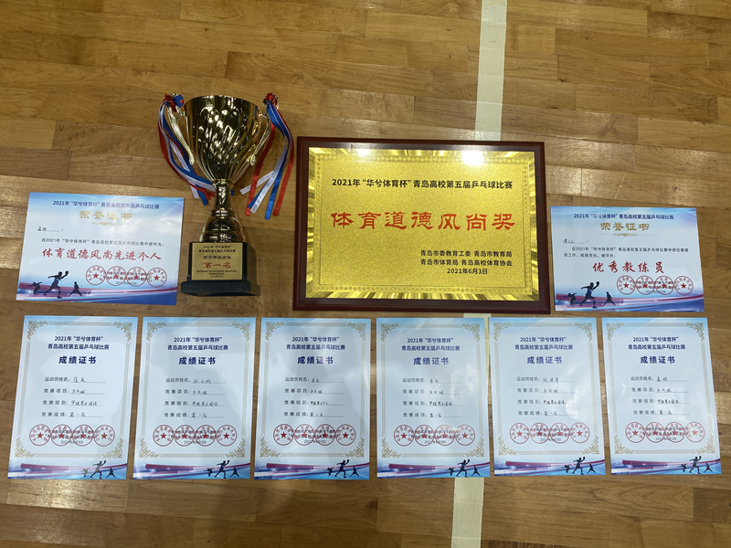 在日前结束的2021年“华兮体育杯”青岛市高校第五届乒乓球比赛中,365完美学生乒乓球队获男子甲组团体冠军、男子单打亚军及体育道德风尚奖,孟硕获得道德风尚先进个人称号,谭文龙老师获评优秀教练员。