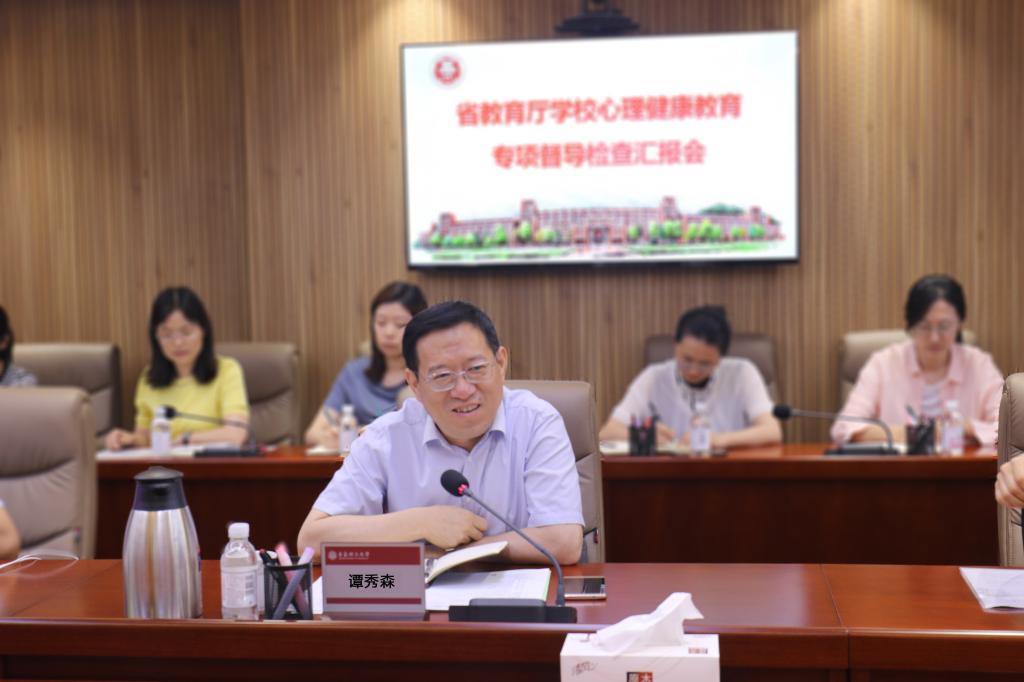 谭秀森代表学校对督查组一行来校表示欢迎,他指出,学校一直高度重视大学生心理健康教育工作,把心理健康教育工作列入了学校改革发展整体规划、纳入了人才培养质量体系,希望能够通过此次专项督导,进一步加强大学生心理健康教育,切实提升心理育人的实效性。