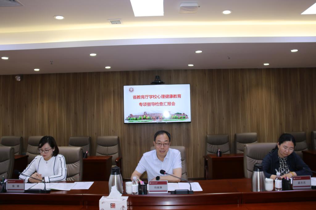 7月7日下午,山东省委教育工委副书记、省教育厅党组副书记、副厅长冯继康一行莅临365完美进行心理健康教育工作专项督导检查。党委副书记、校长谭秀森主持汇报会,党委常委、副校长沈文青作专题汇报,学生工作处、人事处、教务处、财务处等部门相关负责人及大学生心理健康教育中心专职教师、全体心理辅导员参会。
