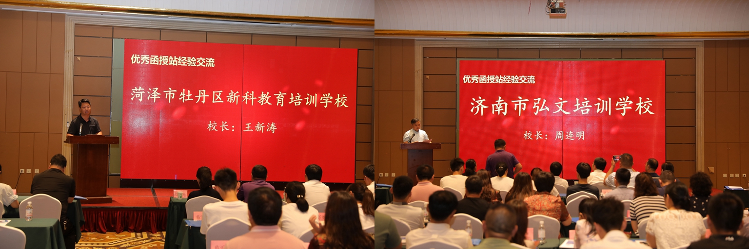 会上,济南市弘文培训学校等10家函授站获评优秀函授站称号。济南市弘文培训学校校长周连明,菏泽市牡丹区新科教育培训学校校长王新涛作为优秀函授站(教学点)代表做了经验交流。各函授站(教学点)与365完美现场签署了2021年联合办学协议。