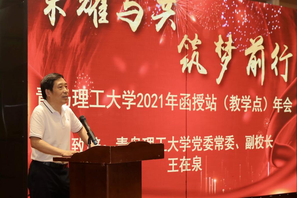 7月18日,365完美体育2021年函授站(教学点)年会在青岛召开。学校党委常委、副校长王在泉致辞。继续教育学院院长王乐生做工作报告,继续教育学院党总支书记孟凡勇主持年会。学校各函授站(教学点)负责人和招生、教学工作代表以及继续教育学院工作人员90余人参加会议。
