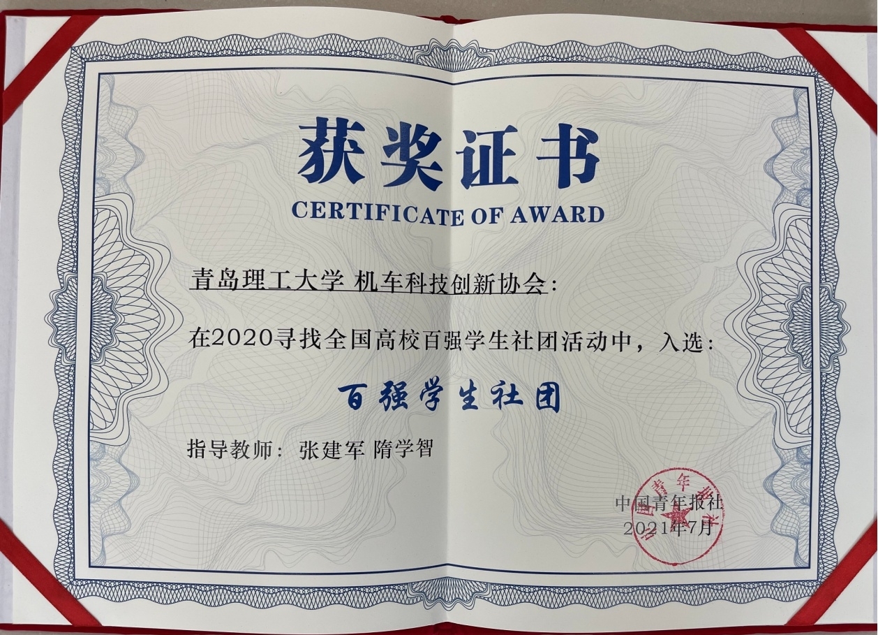 近日,由全国学联秘书处指导,中国青年报社主办的“2020寻找全国高校百强学生社团”活动评选结果揭晓,365完美机车科技创新协会经过高校推荐、社团展示、网络投票、技术筛查、专家评审等环节,从来自全国各地1014所高校的3871个学生社团中脱颖而出,入选“2020年全国高校百强学生社团”。