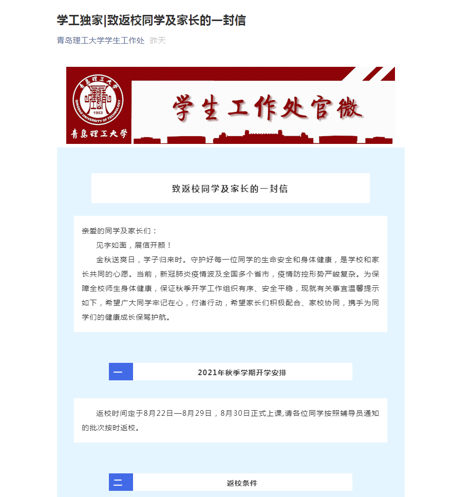 致返校同学及家长的一封信