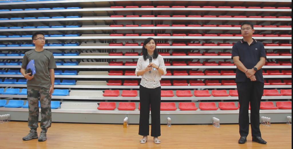 8月23日上午,校党委常委、副校长沈文青在学生工作处处长、武装部部长焦红良陪同下,来到嘉陵江路校区集训现场,检查指导军训准备工作,看望慰问参加暑期集训的学生教官团成员。