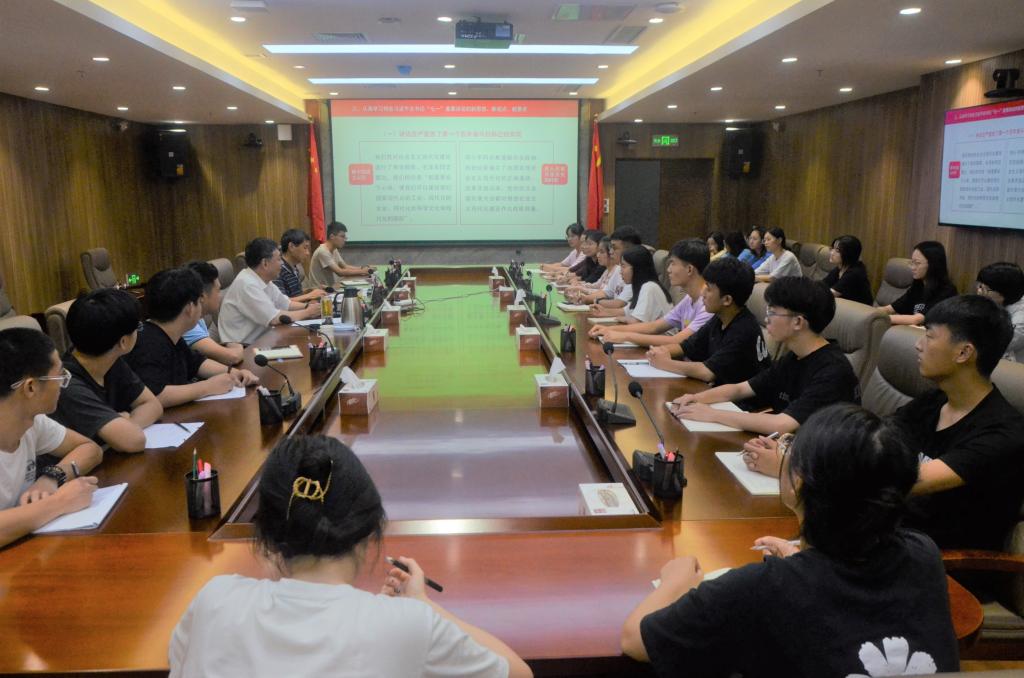 杨兴昌以“百年辉煌路 奋进正当时”为题,从“准确把握习近平总书记“七一”重要讲话的重要意义,认真学习习近平总书记“七一”重要讲话蕴含的百年党史中的数字密码,深刻领会习近平总书记“七一”重要讲话的新思想、新观点、新要求,在学懂弄通做实上下功夫,做勇于担当民族复兴大任的新时代大学生”四个方面深度解读了习近平总书记“七一”重要讲话内容。杨兴昌指出:习近平总书记“七一”重要讲话史诗般展现了中国共产党波澜壮阔的百年历程,是对党的百年奋斗历程的全面总结,也是党团结带领人民以史为鉴、开创未来的行动指南,为党新的征程指明了前进航向。从青年学生的视角,要认真学习领悟,深入把握实现中华民族伟大复兴中国梦的重大意义、科学内涵、现实任务,增加为实现民族复兴伟业不懈奋斗的政治自觉。树立远大理想,胸怀伟大祖国,厚植爱国情怀,坚定“四个自信”,练就过硬本领,敢于拼搏奋斗。