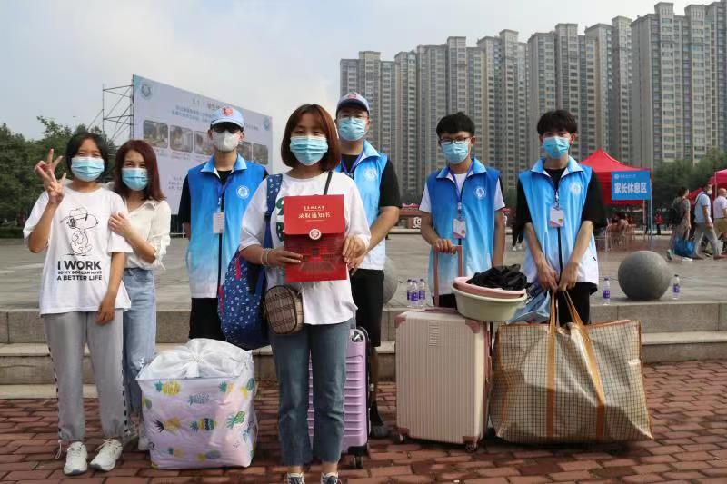 实时大屏直播、5G远程直播,在西海岸新区主校区门口搭建的大屏幕上,实时播放着报到现场情况和随机采访,让校外休息区的家长们随时能够看到校内学生报到情况,了解校园景色、学校学院及专业学科情况,通过直播镜头,家长们同新生一道“步入”明亮的宿舍、靓丽的餐厅,与新生一同感受着开启大学新生活的兴奋之情。红外线测温、人脸识别系统、新生报到大数据分析简化了新生报到流程……学校整合启用了具有多项应用功能的“学工系统”,通过“互联网+”模式、应用大数据等信息技术,实现小而精、轻而快的网上流程服务功能,助力服务新生入学报到。活跃在迎新现场的300余名“青小鲤”志愿者,头戴“小蓝帽”,身着志愿服务马甲,为新生搬运行李、做现场引导,为新同学提供热情周到的服务。(撰稿:王云霞;摄影:王妍、杨健、王云霞;审核:钱钧)