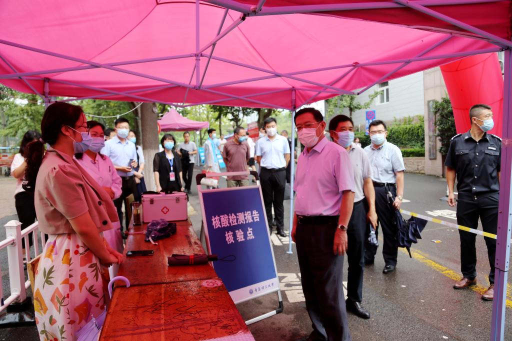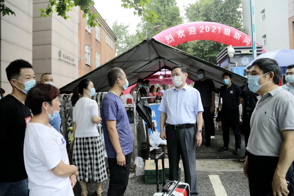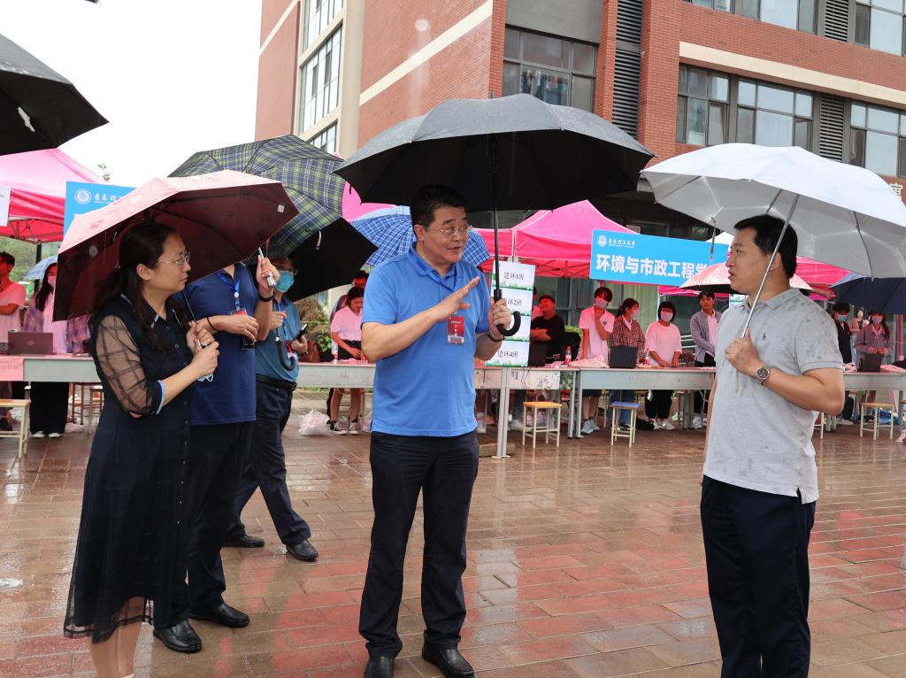 上午9点,王亚军一行深入西海岸新区主校区新生报到各现场,认真询问新生报到情况。在学校门口,100余顶帐篷搭起的300米“风雨长廊”,为雨中报到的新生提供了从校门口到校内摆渡车的温馨通道,有力保障了新生入校的顺畅、安全。王亚军在肯定迎新工作组织周密、服务便捷、用心暖心的同时,勉励大家以饱满的热情为新生提供贴心优质的服务,把党史学习教育的成效切实体现到为新生服务的工作中,将学校的温暖传递给新同学。
