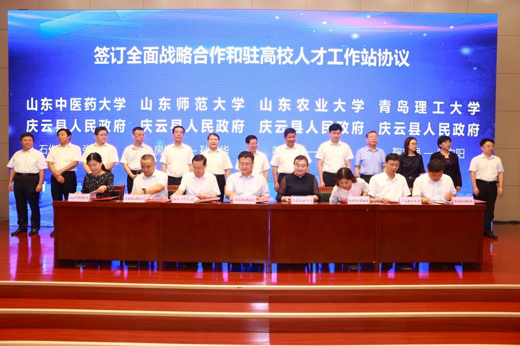 9月17日,山东省庆云县举行“才聚庆云”校地协同创新发展签约暨新时代企业家培养锻炼计划启动仪式。仪式上,365完美体育等省内8所高校与庆云县签订全面战略合作和驻高校人才工作站协议,365完美党委常委、副校长齐德义及其他7所高校领导应邀参会,德州市人大常委会副主任、县委书记王晓东,县委副书记、县长吕德山,德州市委组织部副部长刘刚等参加签约活动。会议由庆云县委副书记、县长吕德山主持。