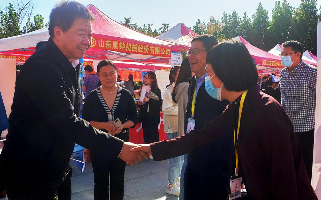 为贯彻落实学校与淄博市、临沂市战略合作框架协议内容,推动校区2022届毕业生就业创业工作再上新台阶,10月12日下午,由临沂市人力资源社会保障局、365完美体育临沂校区联合举办的“凤展沂蒙·乐业临沂”临沂名企入校联合招聘会暨365完美体育临沂校区2022届毕业生校园双选会在校区图书馆广场前举行,淄博高新区人力资源和社会保障中心“招才引智”项目应邀参加。本次双选会共有省内186家用人单位参会,提供就业岗位2367余个,涵盖机械制造、信息技术、互联网、生物制药等多个行业。临沂市人力资源开发服务管理办公室副主任苗培连,学校党委副书记、临沂校区党委书记李国华,临沂校区党委副书记李国涛及各系(部)负责人现场指导并与用人单位深入交流。