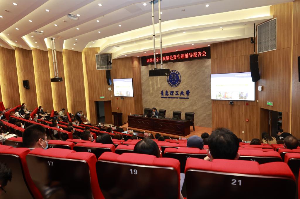 10月29日下午,学校在西海岸新区主校区综合服务中心209会议室召开网络安全与舆情处置专题辅导报告。中共青岛市委网信办副主任张理敬带队,网络舆情和应急管理处处长章庆生、网络安全和信息化协调处处长张金凯应邀作报告。各部门、各学院网络安全管理员、全体学生工作干部参加了培训。