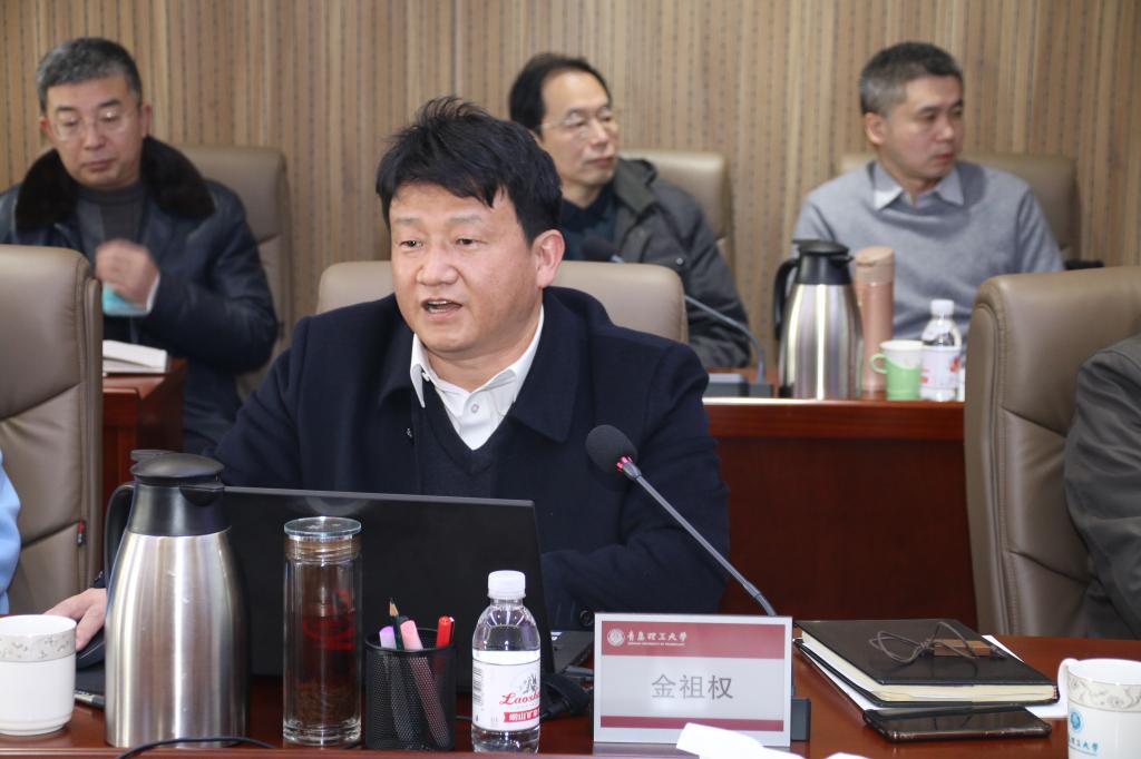 金祖权总结了2021年学校科研工作情况,并从学科评估、高校分类考核、国家与山东省十四五科技创新布局等方面提出了下一步学校科研重点工作思路与规划。