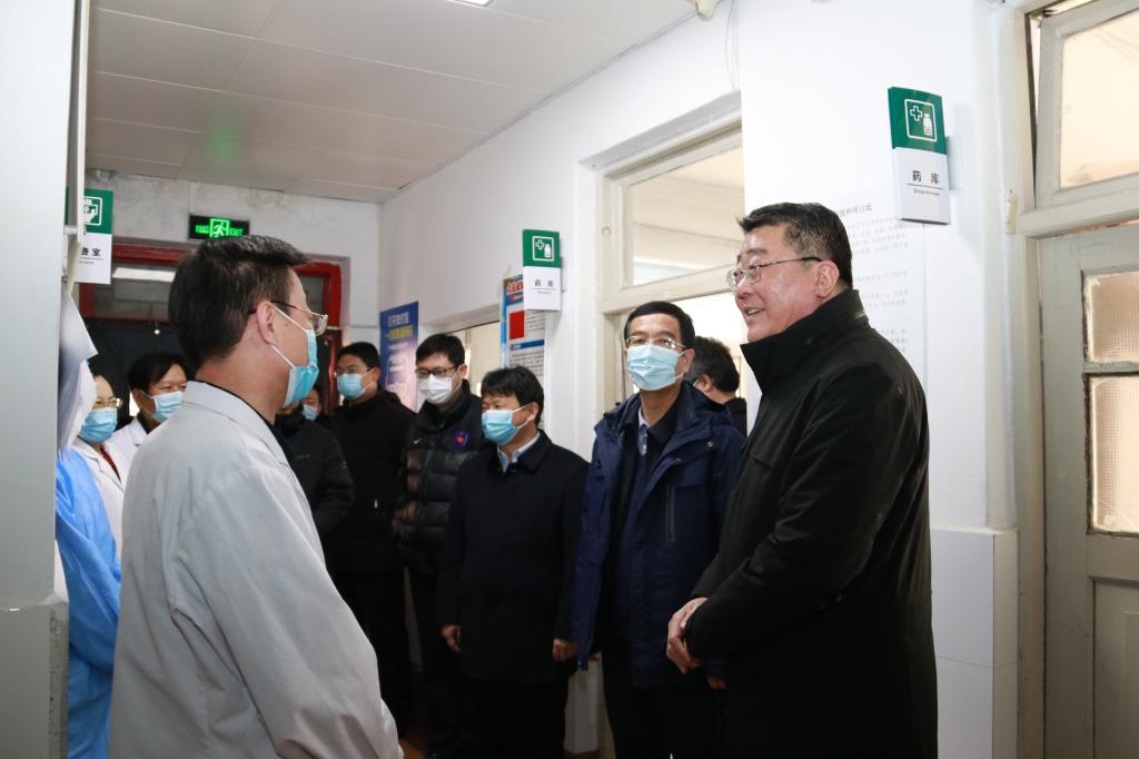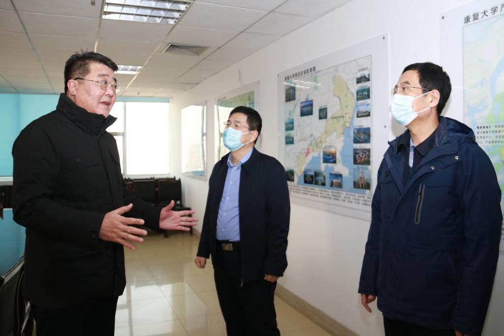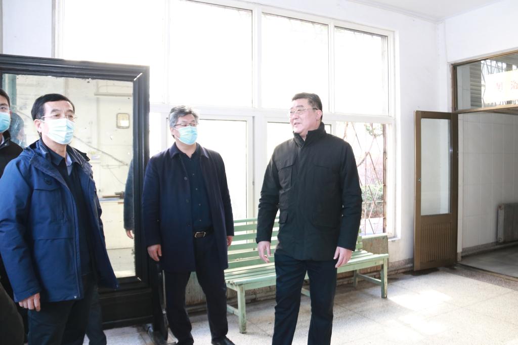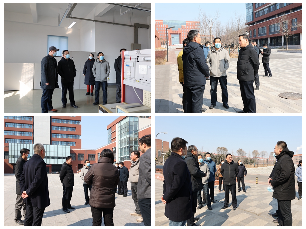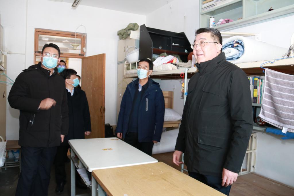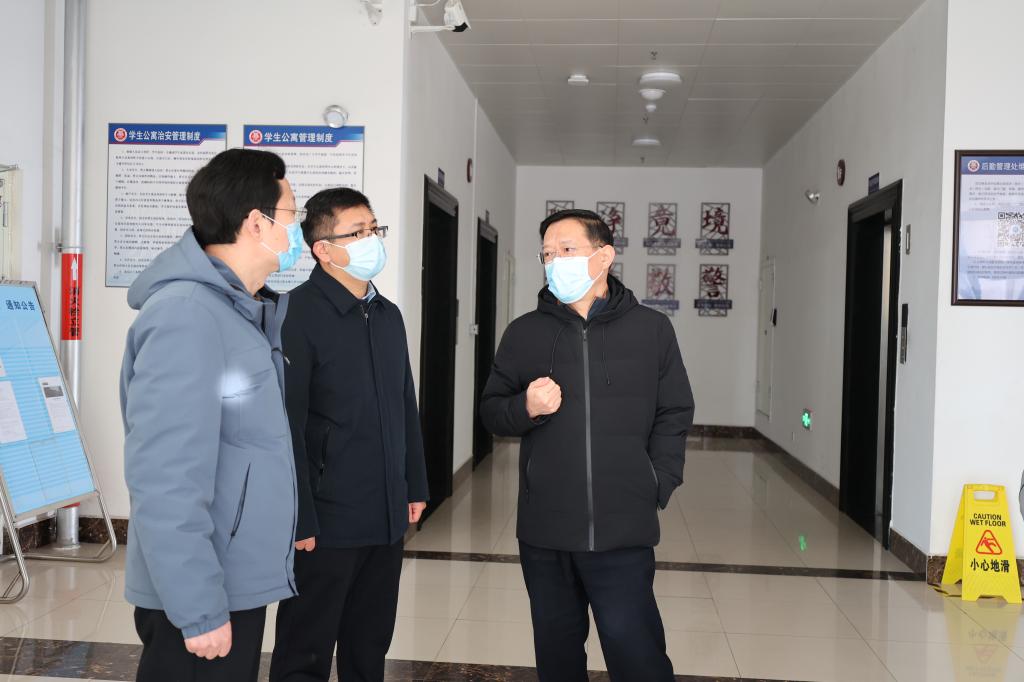 在市北校区,王亚军一行走访了各学院,详细了解教职工报到、学生返校注册准备及课程安排情况;实地检查教学楼、实验室等教学场所,查看教学设施及基础设施运行维护情况;走访了食堂、浴室、学生公寓,检查学生饮食、用水、用电、供暖等各项保障工作落实情况;了解图书馆开馆,校医院疫情防控处置、医疗服务保障及校园环境治理等情况。