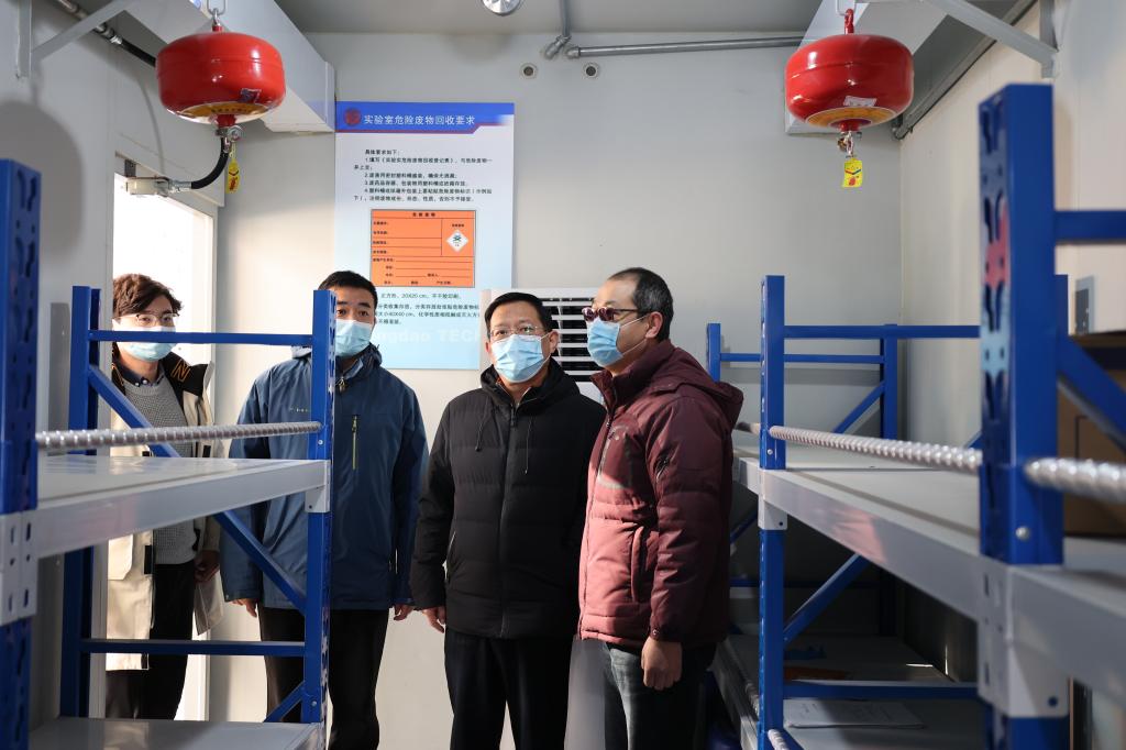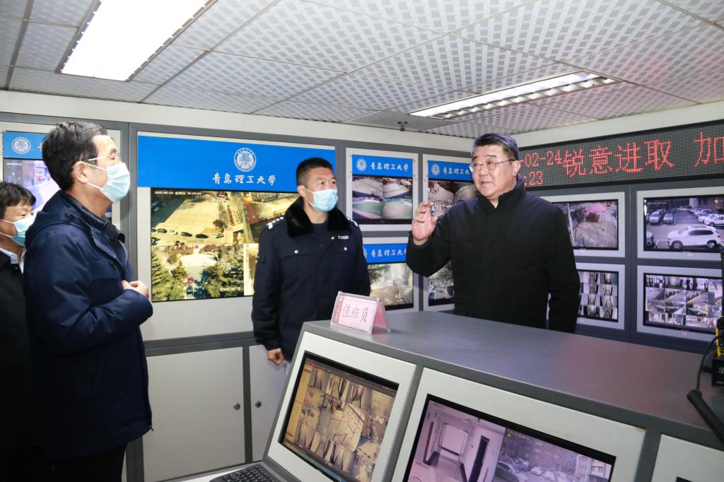 根据学校工作安排,2月24日上午,党委书记王亚军,党委副书记、校长谭秀森带队到市北校区、西海岸新区主校区检查开学准备情况。副校长齐德义、王在泉、张凯、金祖权,党政办公室、学生工作处、教务处、研究生处、资产与实验室管理处、安全管理处、后勤管理处等相关职能部门负责人陪同。