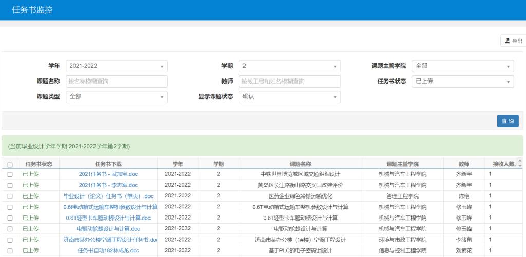校外实习实训等实践教学安排均延期进行,对于已抵达实习岗位的部分学生,安排实习指导教师点对点联系实习学生开展指导,实时关注实习生所在地区疫情防控动态,及时做好实习生的身心健康监测工作,严格执行“日报告、零报告”制度。本科毕业论文(设计)全部采用毕业论文管理系统进行过程化管理,师生可在线完成选题、任务书下达、周记撰写、答疑指导等相关工作。