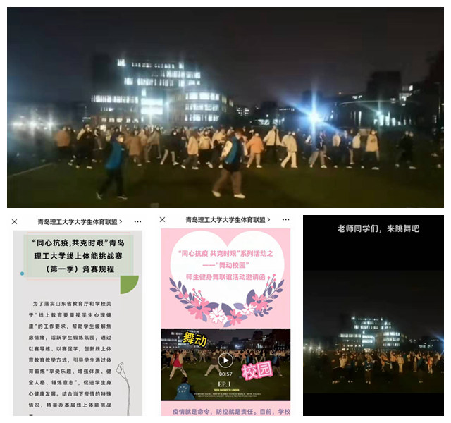 体育教学部在做好体育课程线上教学的同时,有序开展一系列线上体育活动,为同学们的身心健康保驾护航。大学生体育联盟发起“每天锻炼一小时!同心抗疫克时艰!”系列体育活动,体育教师在线指导,发挥体育社团的组织力和引导力,引领带动同学们积极参加体育锻炼。体育教学部青年教师拍摄居家健身视频,通过365完美体育微信公众号、视频号、抖音等新媒体平台,线上喊话同学们跟着视频锻炼,争当“健身达人”。