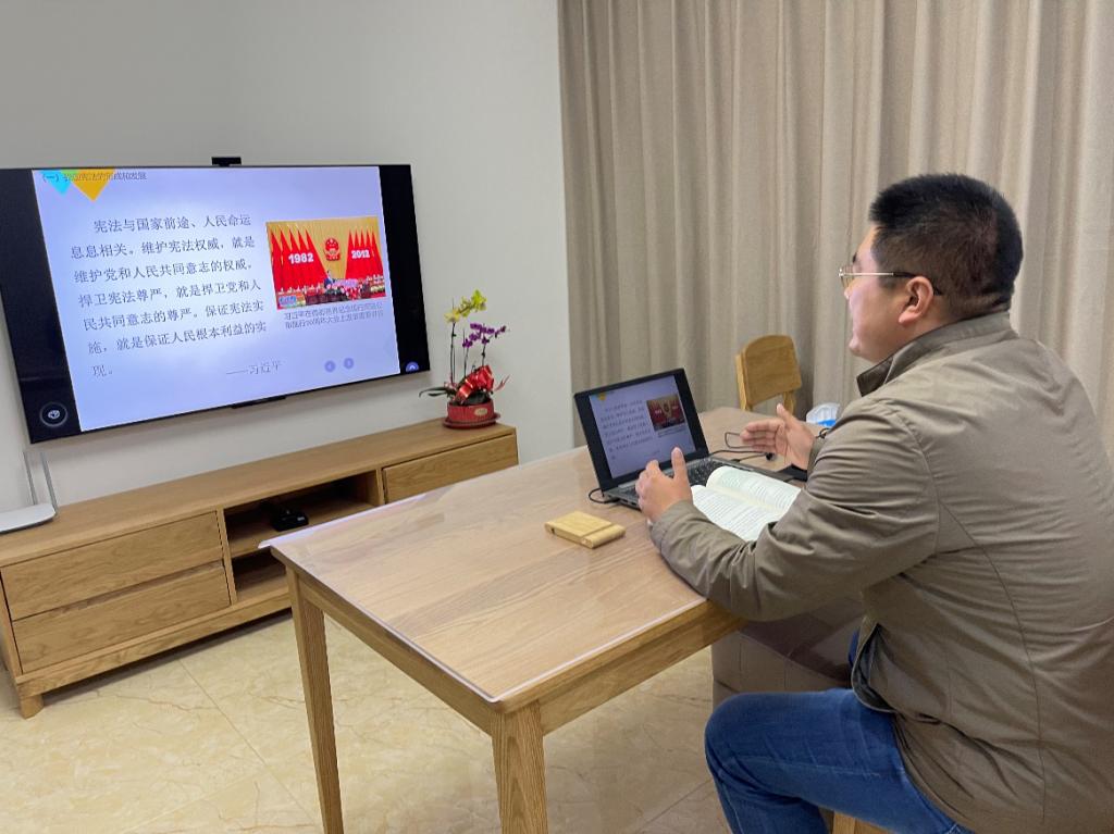 马克思主义学院教师刘亚鹏谈到:“线上授课充满了变与不变,变的是课堂呈现的形式,不变的是教师有滋有味、有趣有料的讲述;变的是师生之间物理上的距离,不变的是师生心灵的沟通和对课程的真心喜爱、终身受益!”居家授课的刘亚鹏老师课前使用学习通发布问卷,询问学生是否具备网络学习条件,最近上网课的心态如何等,关心学生的思想状况,主动做好学情分析;课上采用“腾讯会议直播课串讲知识点+互动答疑+学习通视频观看”模式进行线上教学;课后再次发布问卷询问学生上网课的切身感受,了解学生的学习成效,从而进一步优化线上教学方式,让线上思政课同样成为同学们的“精神大餐”!