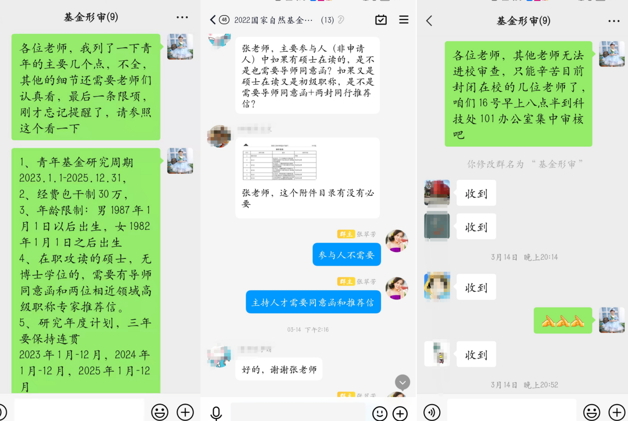 科技处、人文社科处秉持师生至上的服务理念,主动应急求变,科学应对,高质量完成阶段性密集申报任务。为争取项目申报的宝贵时间,针对部分教师因疫情导致材料报送不便等问题,一对一到教师所在社区门口收取汇总材料,解决教师的后顾之忧。顶住时间压力与任务强度,圆满完成350项国家自然科学基金以及90余项国家社科基金和教育部人文社科基金的形式审查与申报工作。