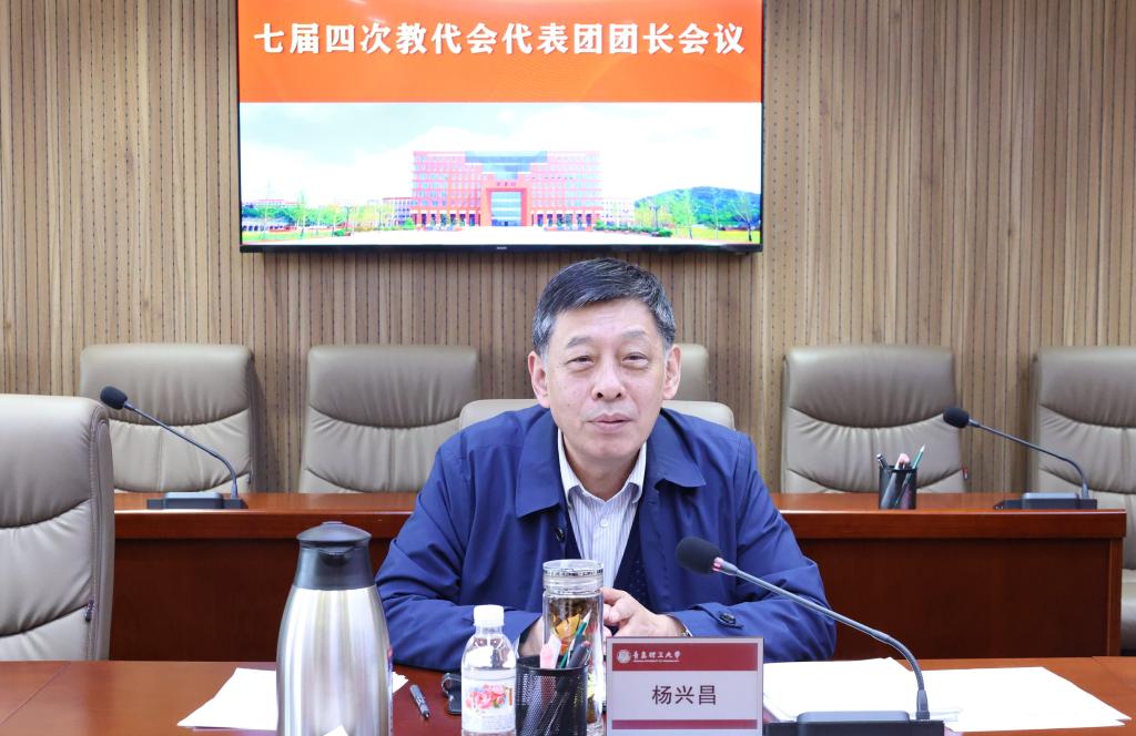 杨兴昌对大会具体事宜和团长工作提出了明确要求。他指出:一年一度的教职工代表大会是依法保障教职工参与学校民主管理、监督和决策的重要形式。各代表团要高度重视,深刻领会教职工代表大会的重要意义,认真落实传达会议精神;要切实做好教代会动员组织工作,及时发放会议材料,认真组织学习讨论;要充分调动代表的积极性和主动性,认真履行代表职责,广开言路,为学校发展建言献策;要熟悉会议日程安排,严格会议纪律,明确请假程序,严格按照疫情防控要求,做好大会各项准备工作。(撰稿:宁利红;摄影:赵楠;审核:董典同)