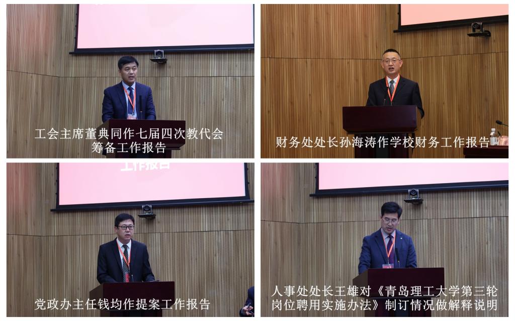 财务处处长孙海涛同志作学校财务工作报告;党政办公室主任钱均同志作提案工作报告;人事处处长王雄同志对《365完美体育第三轮岗位设置与聘用实施办法》制订情况做解释说明。