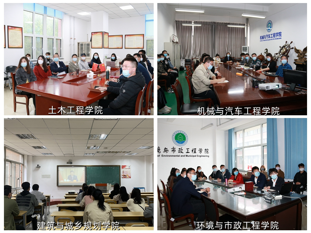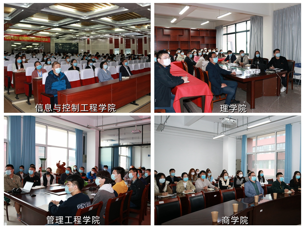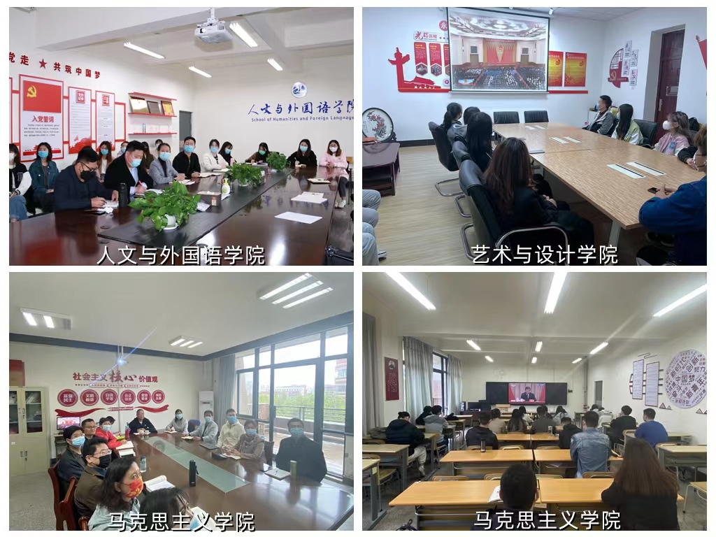 上午10时,学校领导,党政职能部门负责人,各学院党委副书记、团委书记,青年教师、学生党员、学生骨干代表分别在西海岸新区主校区主会场、市北校区和临沂校区分会场集中收看大会现场直播。各学院党政领导班子成员、组织员、青年教师代表、全体辅导员、学生党员、学生骨干代表在各学院分会场,马克思主义学院领导班子成员、全体思政课教师在思政课教师分会场集中收看大会现场直播。
