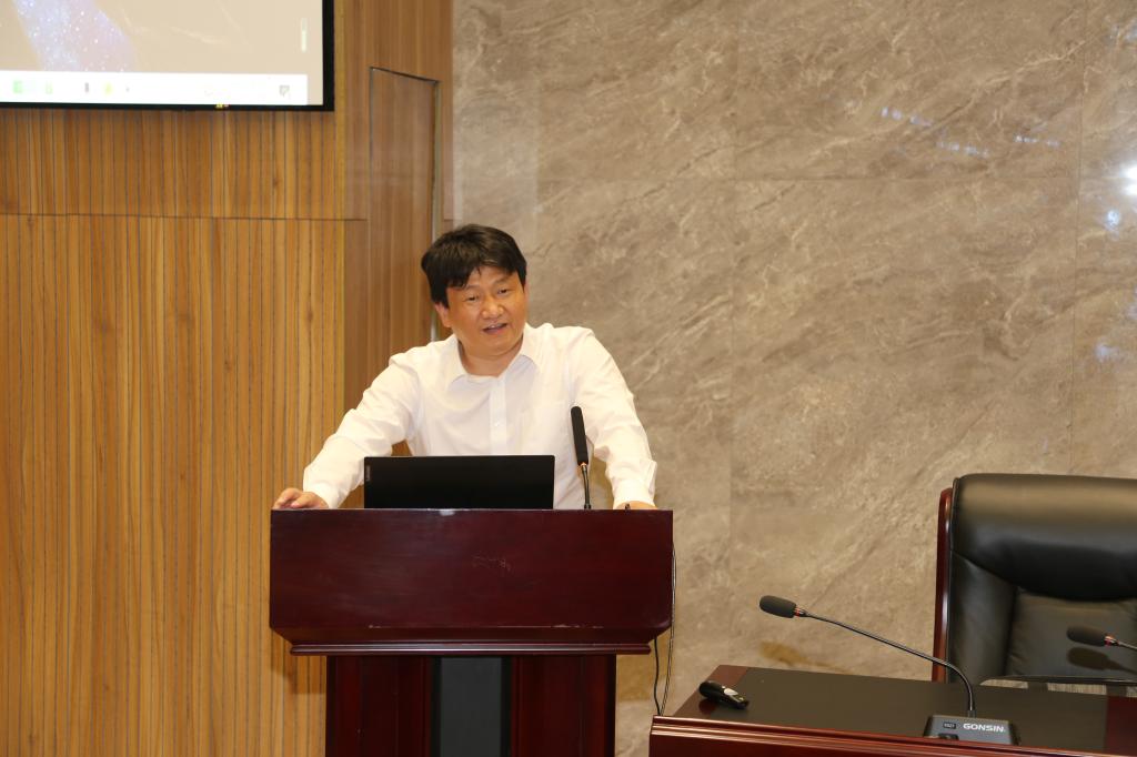 会议邀请了山东大学外国语学院副院长马文教授和山东理工大学社会科学处邢同卫处长做专题报告。马文做了《新文科视野下的交叉学科建设与发展—以“临床语言学”交叉学科学位点建设为例》专题报告,从学科发展、专业与师资队伍建设、学生培养、研究成果、对外交流等方面介绍了山东大学外国语学院“临床语言学”交叉学科学位点建设经验。邢同卫做了《强化科研组织工作,推动科研与学科高质量发展,助力高水平大学和高水平学科建设》专题报告,从政策引领、组织服务、学术训练三方面介绍了山东理工大学“学校—学院—教师”三位一体的科研保障体系。