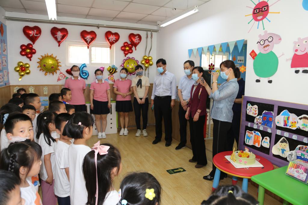 6月1日,在第72个“六一”国际儿童节到来之际,党委常委、副校长沈文青来到学校市北校区幼儿园,亲切看望慰问幼儿园师生,为他们送上美好的节日问候与祝福。市北校区办公室、工会(妇委会)、后勤管理处等部门负责人陪同走访。