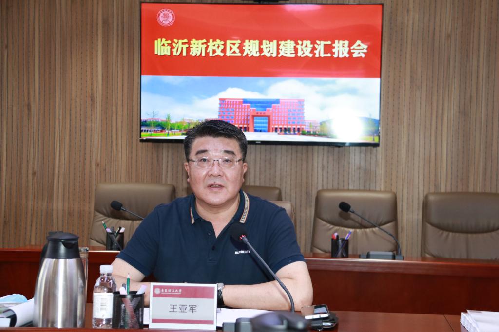 王亚军在讲话中回顾了临沂校区的发展历程,强调要站在实现特色鲜明的高水平应用研究型大学建设目标、办好沂蒙人民满意的高等教育、履行为党育人为国育才使命任务的高度,提高对规划建设好临沂新校区重大意义的认识,按照“一体两翼”的办学空间格局,立足临沂、面向鲁南、服务山东,努力把临沂校区建设好,更好地服务临沂市经济社会发展。要把握住关键节点、弹好钢琴,切实做好总平面图、竖向设计图、管线综合图和工程概算,相关设计团队要靠上时间、靠上精力、驻在现场,与各方加强沟通、密切配合,快速推动临沂新校区项目建设。