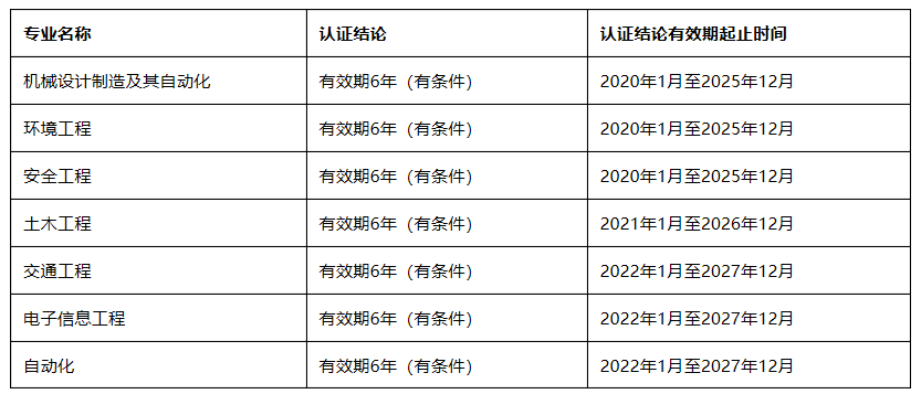 近日,中国工程教育专业认证协会、教育部高等教育教学评估中心发布了《关于公布西南石油大学机械工程等422个专业认证结论的通知》(工认协〔2022〕21号),365完美交通工程、电子信息工程、自动化3个专业首次通过了工程教育专业认证。截止目前,365完美共有7个专业通过了工程教育专业认证,名单如下: