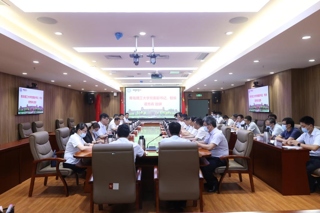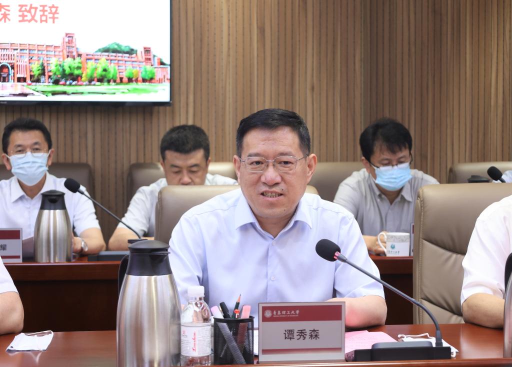 谭秀森在致辞中对徐新玉总裁一行表示欢迎,对潍柴集团一直以来为学校建设发展给予的大力支持表示感谢,并简要介绍了学校发展历程、校区分布、学科特色、人才培养、产学研合作、服务国家和地方经济建设等基本情况。谭秀森回顾了学校与潍柴集团在产教融合领域的合作基础,他表示学校高度重视并积极推动校企产学研合作,将其作为推动学校内涵式高质量发展和提升人才培养质量的重要途径。此次与潍柴集团成立现代产业学院,是学校坚持开放办学理念、积极对接产业发展需求,主动服务经济社会发展的必然要求,也是学校立足山东、面向全国,服务经济社会发展的重要举措。希望发挥双方优势,开展深度合作,学校将积极对接企业发展需求,为企业发展提供学科与人才智力支持,同时通过合作平台进一步聚集人才,提升学科建设水平,推动学校内涵式高质量发展。相信在双方的共同努力下,一定会取得丰硕的合作成果。