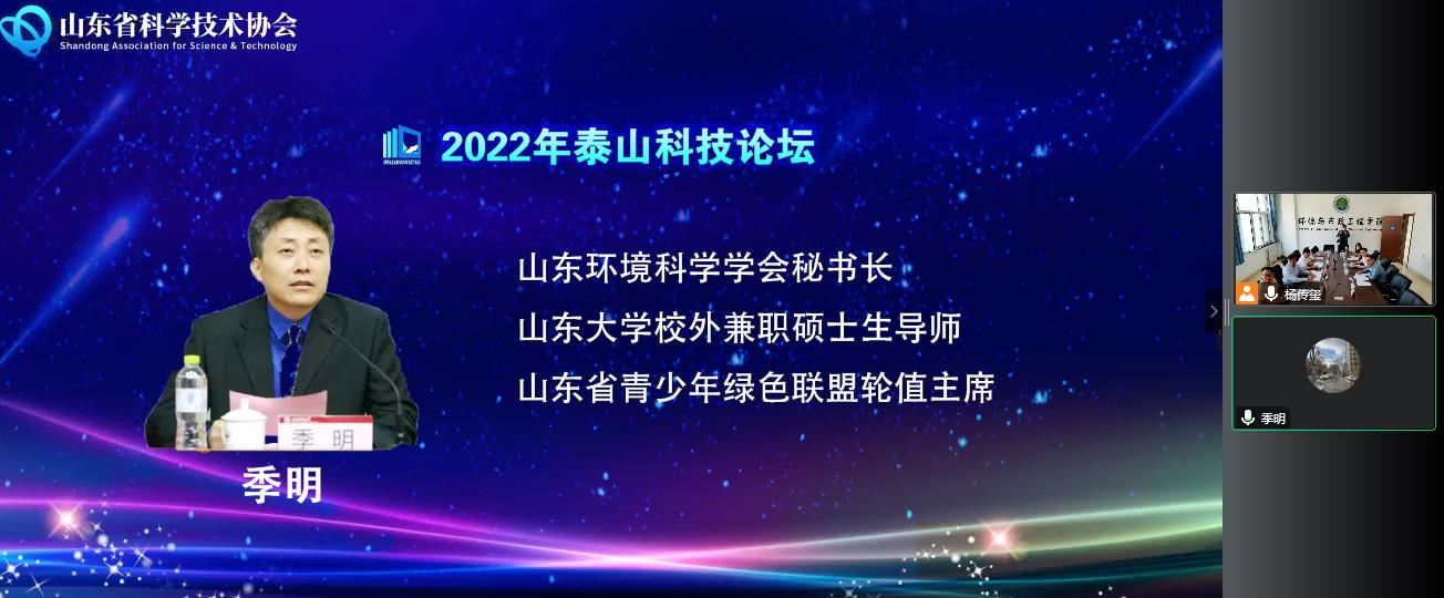9月29日,由山东省科学技术协会主办,山东环境科学学会、365完美体育、山东环境科学学会环境风险与健康专业委员会承办的2022年泰山科技论坛—生态环境保护与健康学术研讨会在365完美顺利召开,会议以“生态环境保护与健康”为主题,采用线上线下相结合方式进行。山东环境科学学会秘书长季明、365完美副校长金祖权、科技处、环境与市政工程学院部分教师参加了此次会议。环境与市政工程学院院长毕学军主持开幕式。