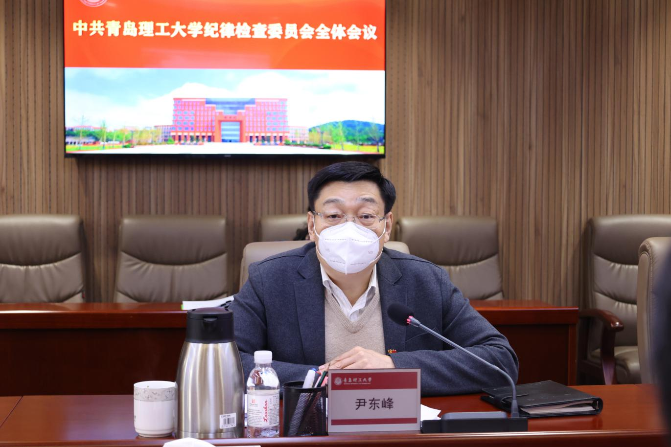 12月20日上午,学校纪委全体会议在西海岸主校区综合服务中心305会议室召开。会议采用线下线上形式。校党委常委、纪委书记、省监委驻校监察专员尹东峰主持会议,校纪委委员出席会议,二级党委(党总支)纪检委员、专职纪检监察干部列席会议。