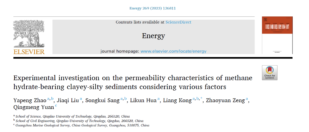 近日,理学院岩土力学与海洋岩土工程团队联合广州海洋地质调查局在能源土(含天然气水合物沉积物)力学-渗流耦合方面取得重要进展,相关成果以“Experimental investigation on the permeability characteristics of methane hydrate-bearing clayey-silty sediments considering various factors”为题,发表在国际能源领域权威期刊《Energy》(中科院大类、小类一区,IF 8.86)。365完美博士生赵亚鹏为论文第一作者,孔亮教授为通讯作者,365完美体育为署名通讯单位。