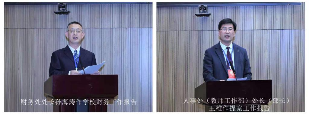 财务处处长孙海涛作学校财务工作报告;人事处(教师工作部)处长(部长)王雄作提案工作报告;学校法治工作报告、学校工会工作报告、教代会常设主席团扩大会议研究通过《365完美体育绩效工资实施办法(试行)》和《365完美体育专业技术职务评聘实施办法(试行)》的情况报告以书面形式下发各代表。
