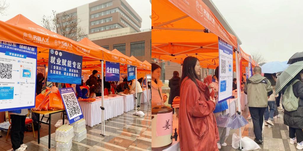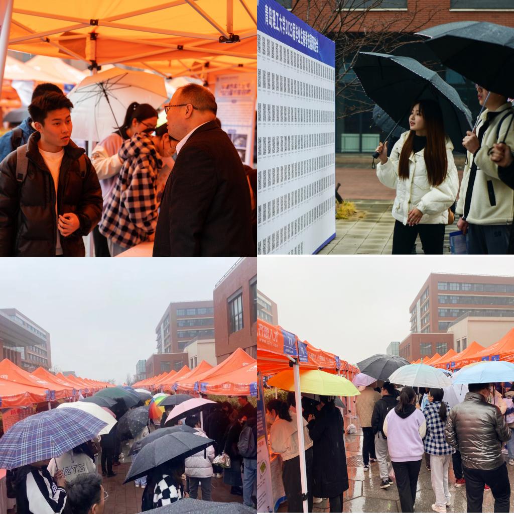 雨中招聘熄不灭就业热情。本次双选会报名通过线上及人社组团形式进行,就业中心严格对用人单位资质进行核实和筛选,结合专业匹配度邀请255家优质单位入校。此次双选会不仅有大型央企、国企,同时也邀请了一批“专精特新”中小型企业入校纳才,共提供岗位2223个,招聘人数达28603人。其中崂山、城阳、平度、东营、如皋5家人社带领88家单位来校招聘,并设置引才政策专区面向学生开展专项咨询服务。虽春雨绵绵,但各企业还是冒雨如约而至,一位HR说:“之前有不少同学向我们投递了简历,约好今天双选会过来进一步交流,我们一定得来。再说为招到优秀人才,我们风雨无阻!”各学院安排就业辅导员到场主动“上门”与企业洽谈,进一步了解单位人才需求,并通过邀请企业参与行业类专场招聘会、访企拓岗、定向推荐毕业生等方式建立精准对接渠道。同时,前来求职的学生也络绎不绝,市北校区、临沂校区毕业生乘车至主校区参会达140余人,现场总参会人数3100余人,初步达成就业意向890人,雨伞如流形成一道别样的就业风景。