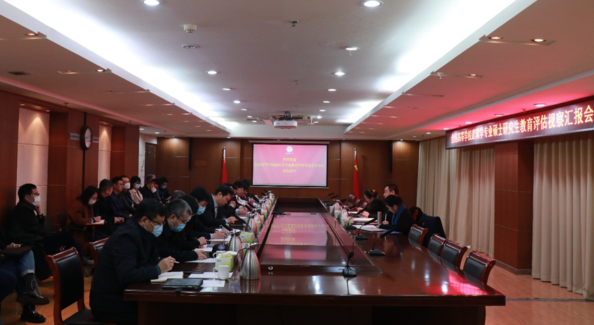 建筑与城乡规划学院院长许从宝作建筑学硕士学位研究生教育建设情况汇报,他从院系概况、培养条件、人才培养体系与建设、针对上轮评估意见的整改建设情况、未来建设思路五个方面向专家组进行了详细汇报。视察组成员就自评报告有关问题与学院以及职能部门进行了交流。